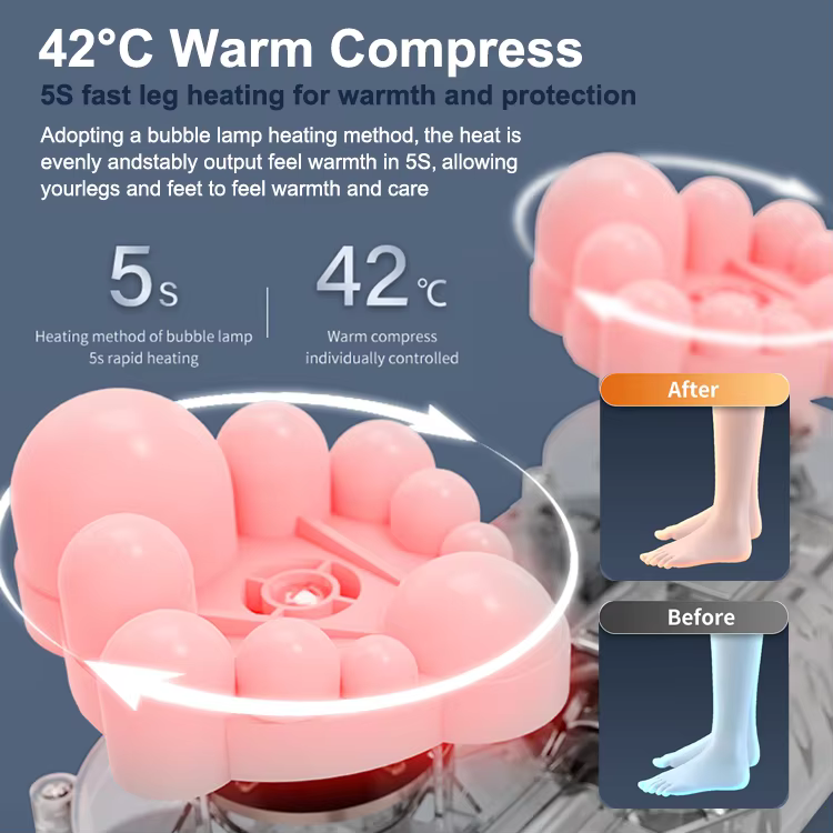 ✔ Soothing heat therapy: The gentle warming function provides targeted heat to the feet and calves, enhancing blood circulation and relieving stiffness. Heat combined with massage helps relax muscles more effectively and promotes overall comfort. Recommended use is 2–3 sessions daily for best results.