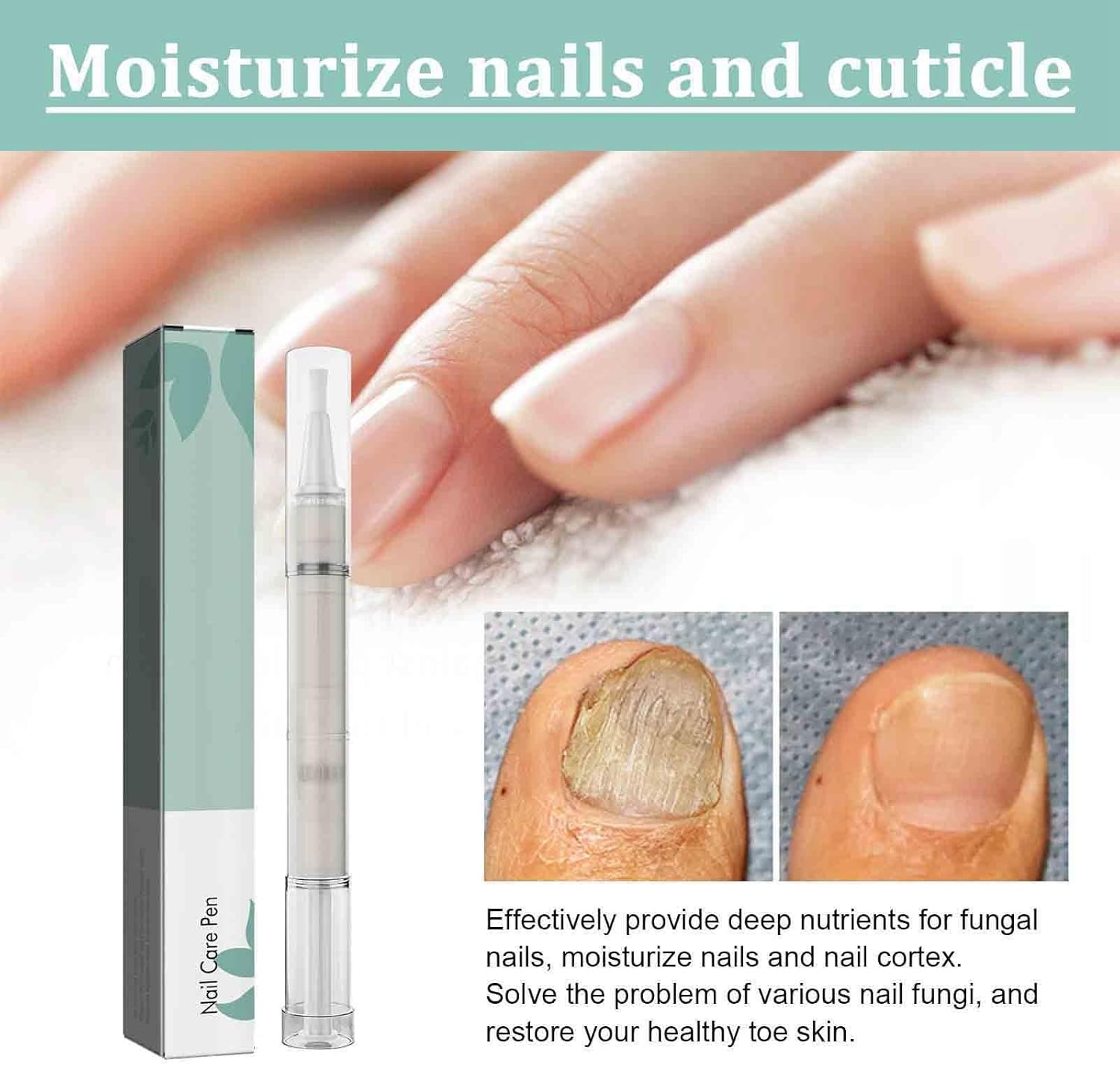 With regular use, nails look cleaner, smoother, and healthier—see clear transformation from infected or brittle nails to a natural shine.