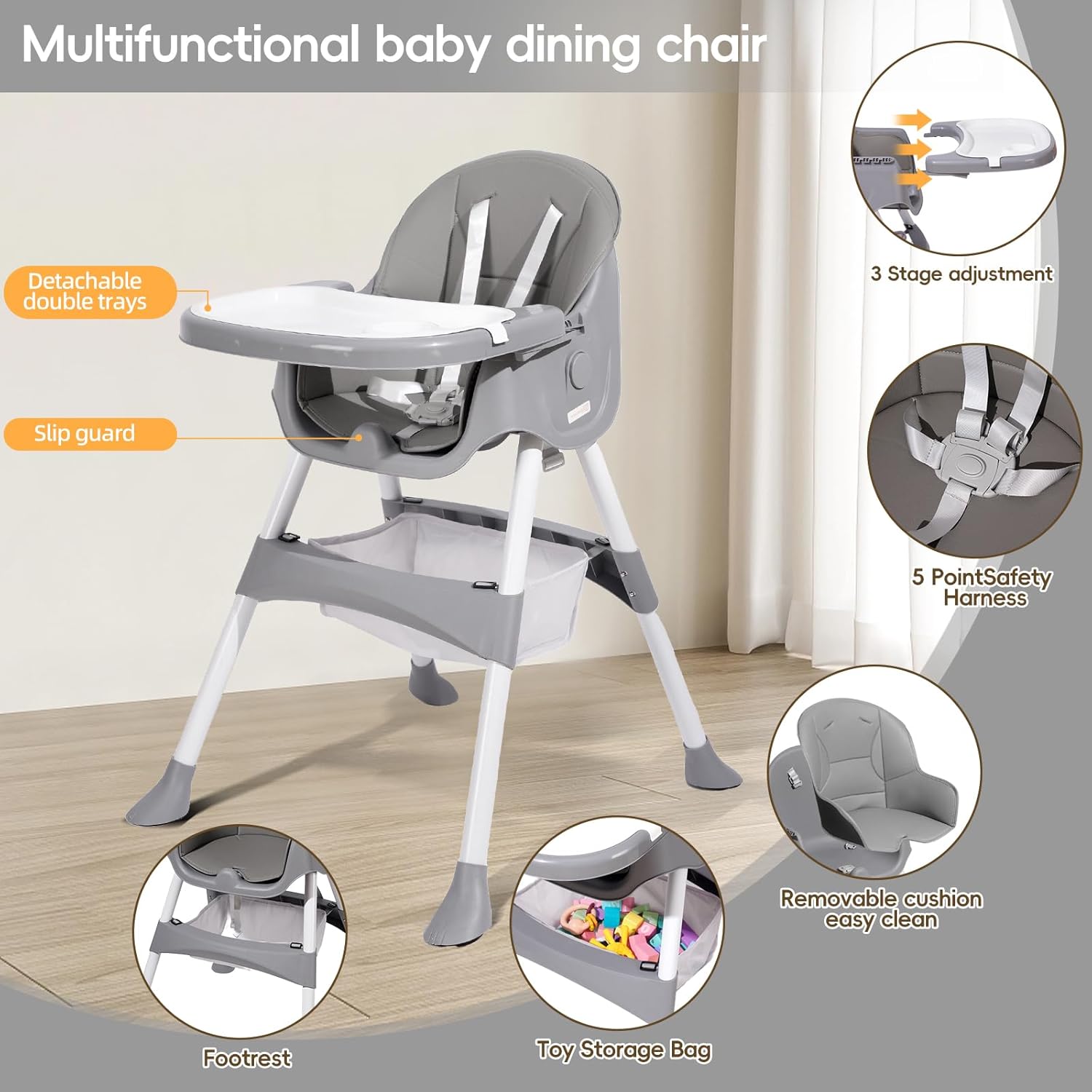 🧼 Clean messes instantly with the waterproof seat and detachable trays—no need to stress about food spills.