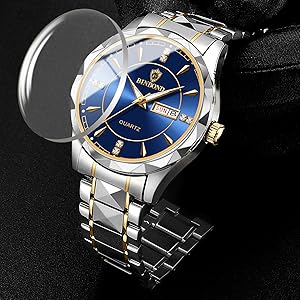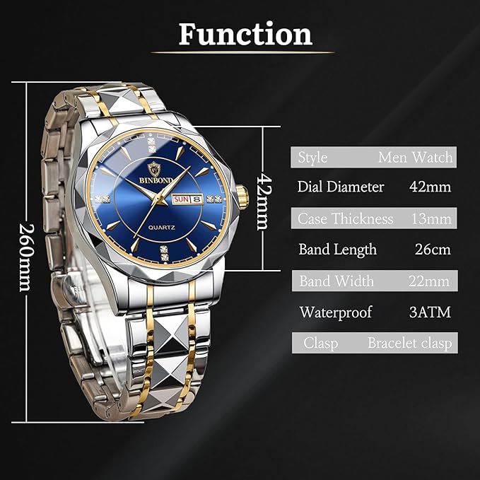✔ Luxury diamond-cut design: The watch features a sophisticated diamond dial with a bold large display, creating a premium look that complements both business and casual styles. Its finely crafted bracelet with butterfly double-press stud closure ensures comfort and a secure fit.