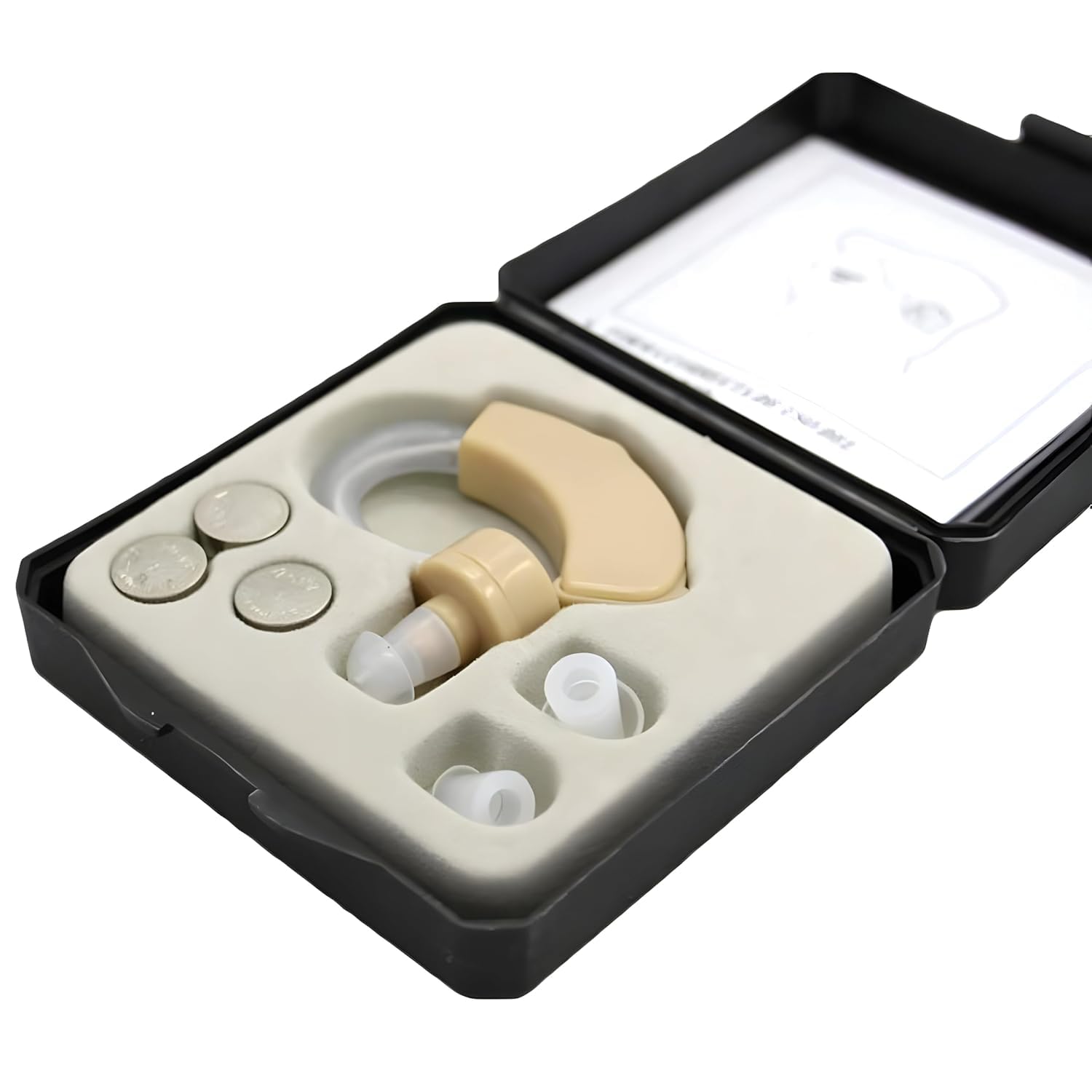 • Special Features: Amplification up to 50 dB, 6 volume levels, auto noise reduction, left/right ear compatible, compact design