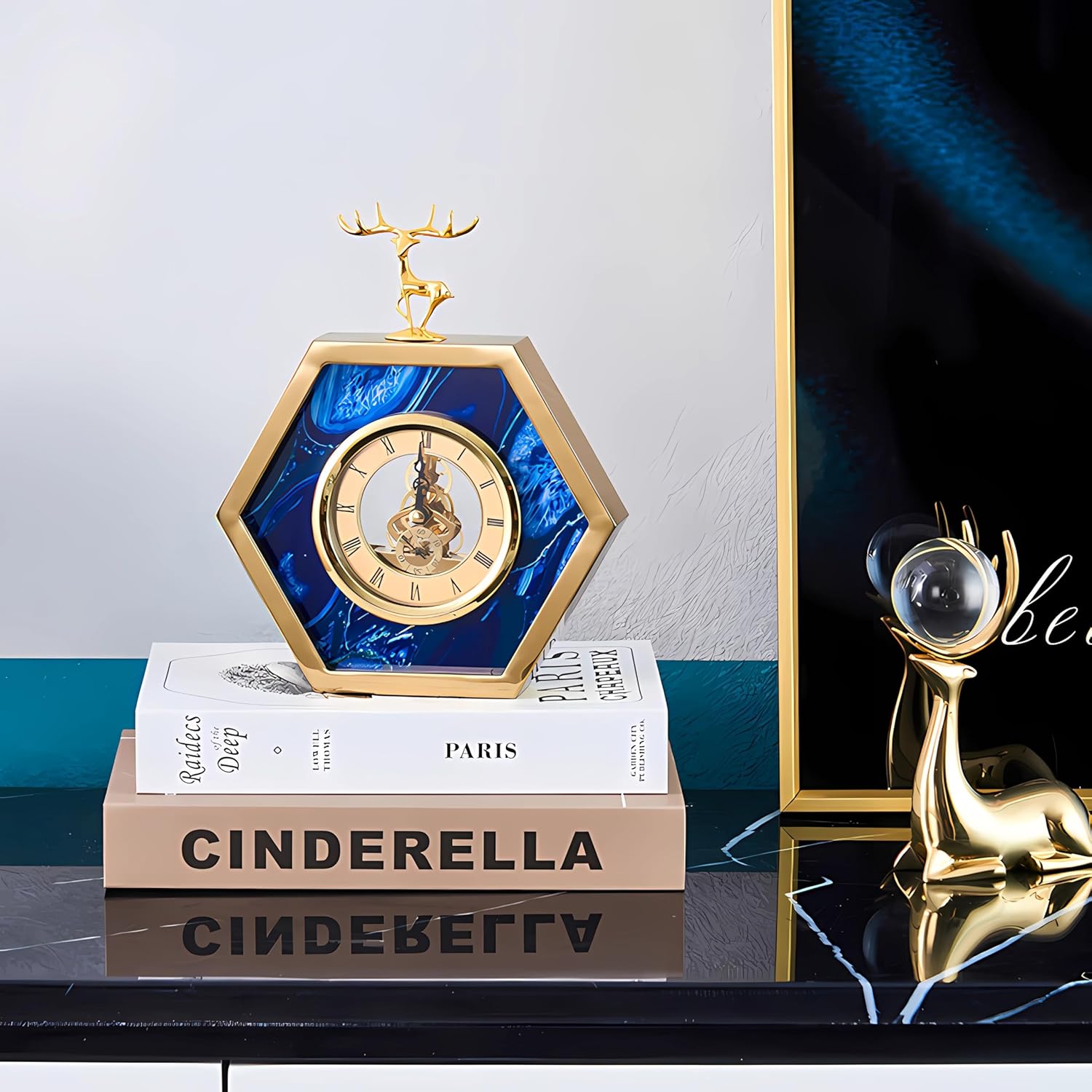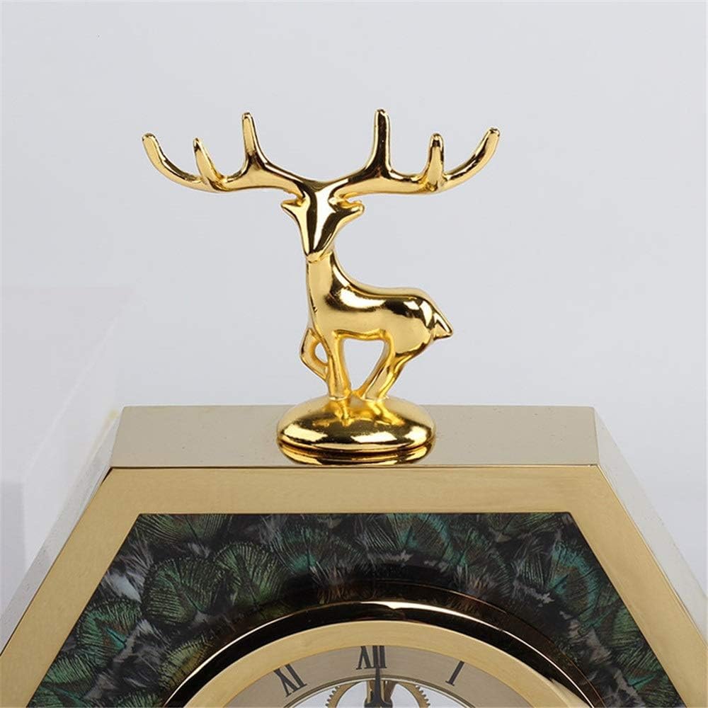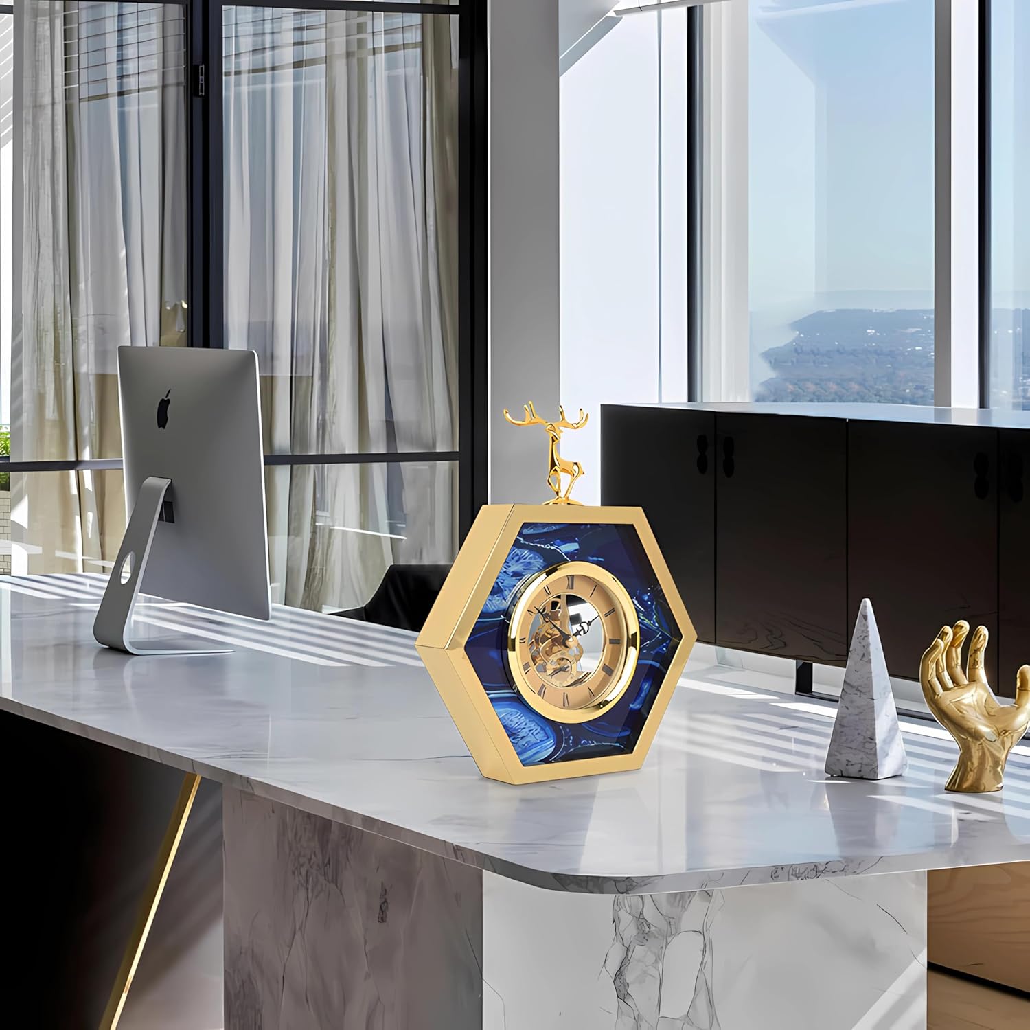 LIGHT LUXURY METAL & AGATE HEXAGON DESKTOP CLOCK WITH DEER HEAD DESIGN