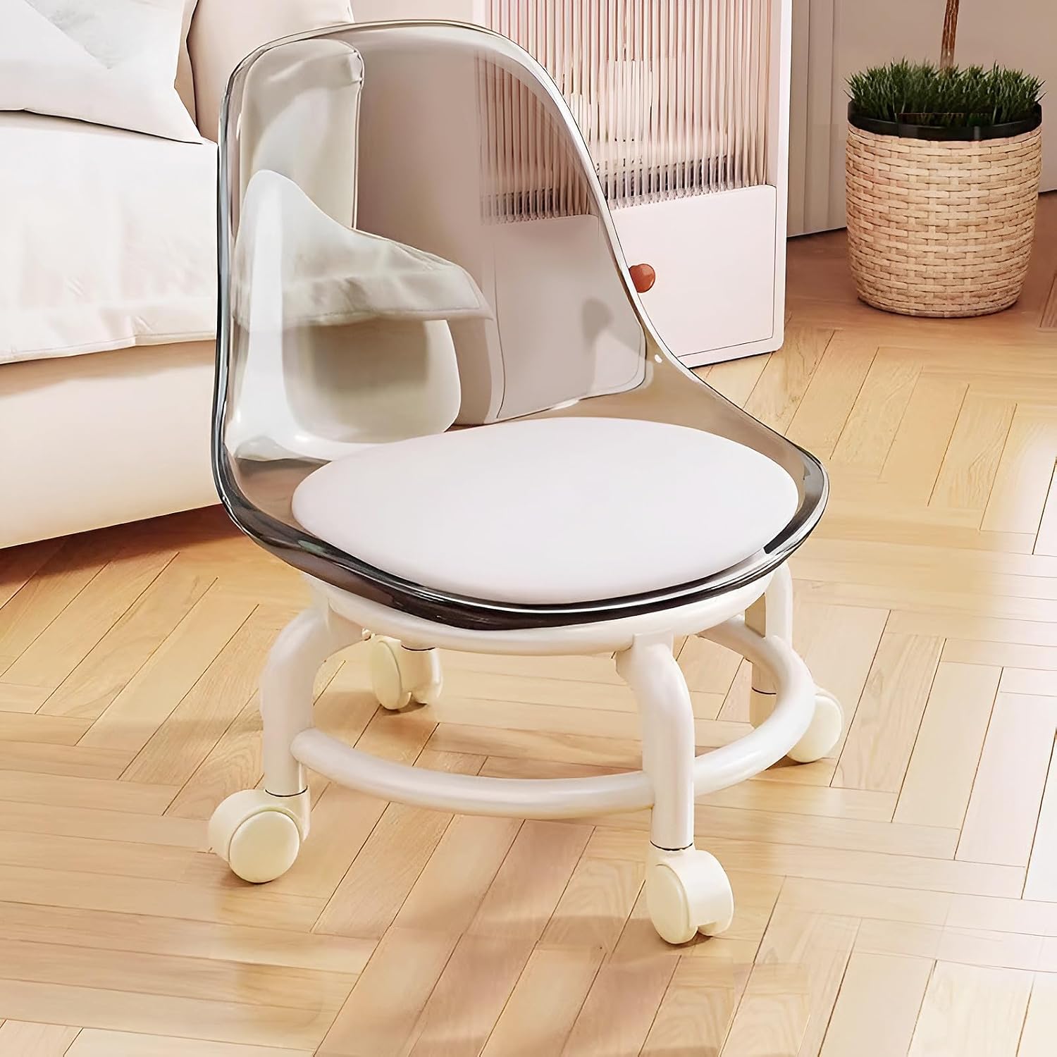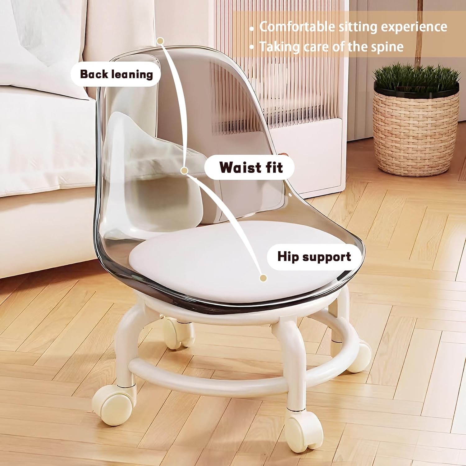 ✔ Ergonomic Back Support with Acrylic Design: This rolling stool features a curved acrylic backrest that is crafted to match the natural shape of your spine. It helps relieve tension in your back muscles and offers supportive comfort while sitting. Whether for adults or children, the sturdy acrylic gives a solid and stylish sense of relaxation during extended use.