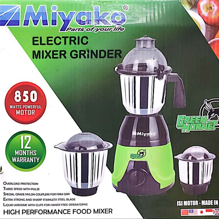 MIYAKO GREEN HORNET 3-IN-1 BLENDER & MIXER GRINDER – 850W POWERFUL PERFORMANCE