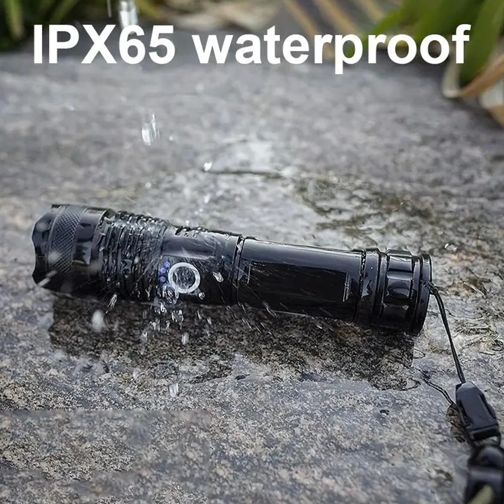 RECHARGEABLE LED FLASHLIGHT – WATERPROOF, 5 LIGHT MODES, ADJUSTABLE BEAM, BATTERY POWERED ALUMINUM TORCH FOR CAMPING & EMERGENCY USE